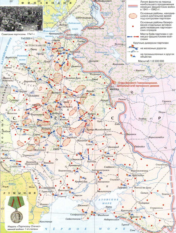 • Проведение разведки. Партизаны очень эффективно собирали разведданные. В частности, данные партизанской разведки использовались для проведения военной операции, например, на Курской дуге.