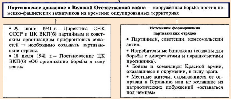 • Солдаты и командный состав РККА, которые оказались во вражеском тылу. Таких было очень много, поскольку в первые месяцы немцы активно наступали и многие советские подразделения оказывались в окружении. Важно - в первый год даже эта категория действовала разрозненно, поскольку солдат не обучали, что нужно делать в тылу врага.