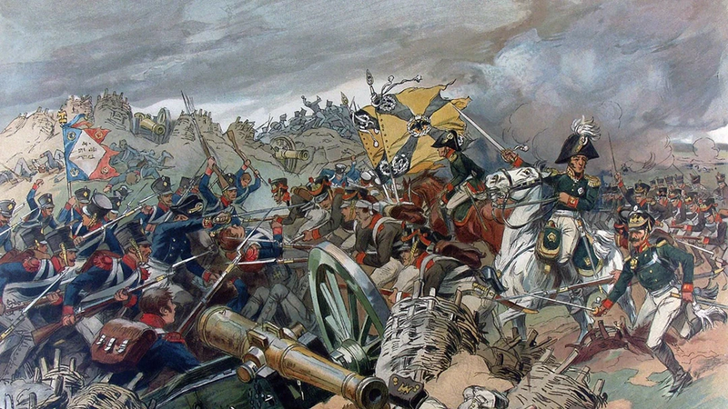 Бородинское сражение началось ранним утром в 5 часов 30 минут французским артиллерийским обстрелом. 7 сентября 1812 года численно превосходящие силы французов непрерывно атаковали наши войска. Двенадцать часов, почти не прекращаясь, шли жесточайшие рукопашные схватки, с обеих сторон стреляли до 1000 орудий. Полки русских и французов целиком погибали в бою, не уступая друг другу ни шагу. Наполеон не считался с потерями и бросал в атаку все новые и новые части своей пехоты и конницы, но ему не удалось добиться в Бородинском сражении успеха. Французская армия разбилась здесь о несокрушимую силу русских войск.